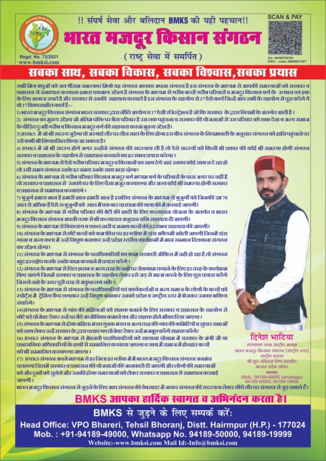 आपका अपना संगठन है इस संगठन के माध्यम से आपकी समस्याओं को सरकार व प्रशासन से समाधान करना हमारा एकमात्र उद्देश्य है. संगठन के माध्यम से गरीब बच्चों गरीब परिवारों व पीडित मजदूर पीडित किसान के हक के लिये
